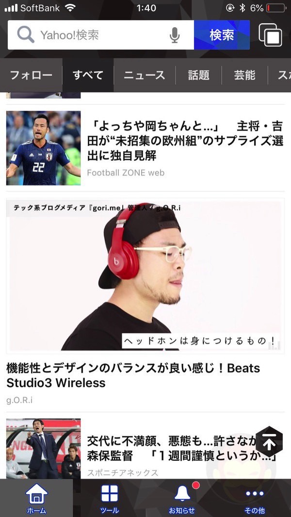 Yahoo! JAPANのトップページに載った時のスクショ