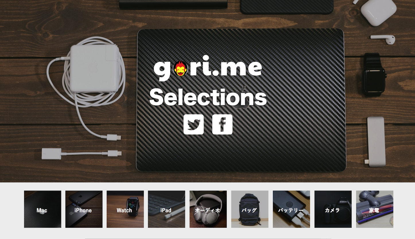 ゴリミーブログ ブログ運営 買ってよかったもの、今使っているもの、気に入っているものをまとめた「ゴリミーセレクト」を公開 g.O.R.i 2017年01月12日 買ってよかったもの、今使っているもの、気に入っているものをまとめた「ゴリミーセレクト」を公開 僕がこれまで買ってよかったもの、今使っているもの、気に入っているものをまとめた「ゴリミーセレクト」を公開した。 現在は下記にある9つのカテゴリに関する商品を紹介している。 Mac iPhone Watch iPad オーディオ バッグ バッテリー カメラ 家電 「ゴリミーセレクト」にある情報は今現在僕が使っているもののみをピックアップ。つまり、他に気に入る製品が登場した場合は新たに追加され、何かしらの理由で使わなくなった場合はシレッと削除される。上記9つのカテゴリも状況を見計らって追加する可能性もある。 「どれ買えばいいの?」「g.O.R.iは結局どれを使っているの?」が気になる人はどうぞご活用くださいませ! ゴリミーセレクト ゴリミー 編集後記:「ゴリミーセレクト」を作った理由 gori.meでは毎年いろいろなものを買ってはレビューしている。これまでレビューした商品はすべて「レビュー記事まとめ」で確認することができるが、問題点があった。 「結局、どれが良いの?」という質問に答えることができないのだ。なぜなら気になったものを買ってはレビューし、紹介しているので「どれを買うべきなのか」を知るためにはすべての記事を読まなければならない。もちろん、みなさんがすべての記事を読みたいと思って頂いていることは知っているが、「読みたい」と「読める」は別問題だ。 だからこそ「2016年買って良かったものランキング」のような記事が役に立つのだが、この記事は年に1回しか書かず、「今、どれを買うべきなのか」という疑問を解消するには遅すぎる。年末にしか買い物をしないわけではないし。 そこで、「ゴリミーセレクト」を作ることを決意。これなら僕が今使っているものを紹介することができる。 中には過去に大絶賛していた商品が載っていない、と言うものもあるかもしれない。これについては、その製品がダメになったというわけではなく、あくまでも「今」使っている製品をピックアップしているからだ。またその製品を使う機会が増えればその商品が掲載される仕組みになっている。 もちろん、「ゴリミーセレクト」に載らない製品が悪いということはない。十人十色なので、僕に合わなかった商品が人によってはベストチョイスである可能性も十分ある。色々と物色したいという人はレビュー記事および動画レビューを参考にどうぞ! レビューまとめ | ゴリミー ゴリミー gori.meの最新情報はFacebookページ(@gorime)、Twitterアカウント(@planetofgori/@gori_me)に加え、プッシュ通知、Feedlyで配信しているので、フォローして頂いていない人はこの機会に是非!