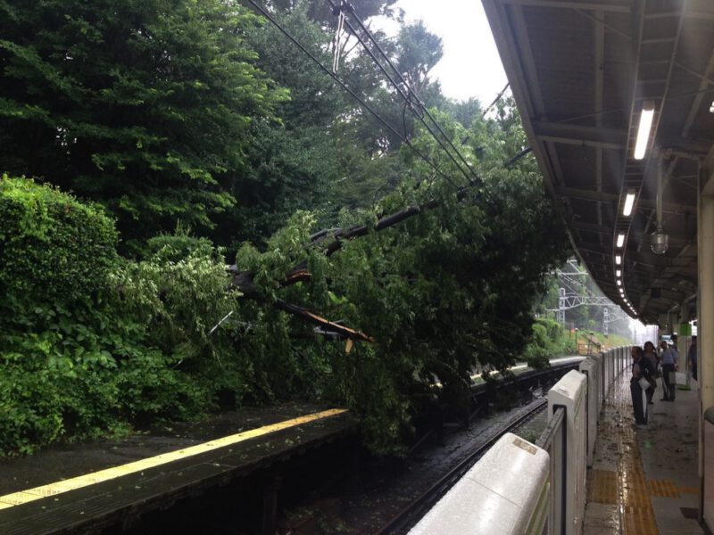 【台風9号】原宿駅横の木が倒れ、ホーム屋根を直撃ーー山手線、運転見合わせ中
