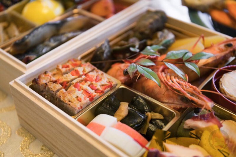 蝦夷アワビの柔らか煮、北海道産無漂白数の子、天然有頭海老の含め煮など