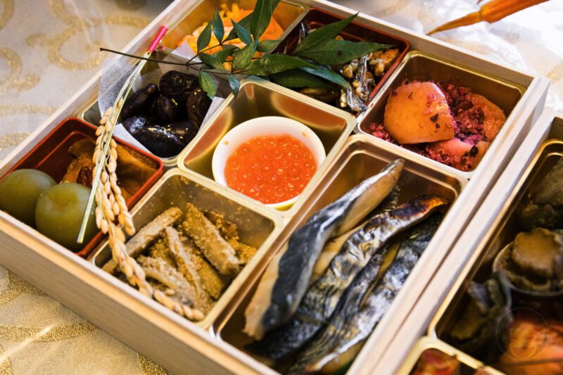 おせちには、農薬・化学肥料不使用で、栽培した農家直送の有機野菜や無農薬野菜、漁港直送の天然魚、放し飼いで育った鶏、抗生物質を投与されていない鶏の自然卵など、厳しい基準で選び抜いた食材だけを使用。醤油は天然醸造の有機醤油、塩はミネラル豊富な天然塩が使われている。