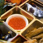 さわらの味噌漬け焼き、いくらしょうゆ漬け、有機白ごまのたたきごぼうなど