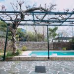 ゴリミーブログ グルメ情報 カフェ スターバックス鎌倉御成町店:テラス席の前にプールがある g.O.R.i 2022年03月21日 スターバックス鎌倉御成町店:テラス席の前にプールがある 漫画家・横山隆一氏の邸宅跡地に作られた、リージョナル ランドマーク ストア店舗 3月半ばに「スターバックス鎌倉御成町店」に立ち寄った。「フクちゃん」で有名な漫画家、横山隆一氏の邸宅跡地に建てられた店舗。日本の各地域の象徴となる場所に建築デザインされ、地域の文化を世界に発信する「リージョナル ランドマーク ストア」の1種だ。 桜の木、藤棚、プールが残されたテラス席が特徴で、暖かい季節になればテラス席は大賑わいだろう。店内は広々としており、天井も高く、開放的な雰囲気で居心地が良かった。後から知ったが、入店して右側の壁沿いに、横山隆一氏の原画が展示されていたそうだ。 テラス席は、カップルや家族連れの利用が多かった。カップルは例外なく、プールをバックにセルフィを撮っていた。僕も撮りたかったが、テーブル席で後ろを向くと、ガラス越しに座っているテーブル席の人たちと目があうので遠慮しておいた。代わりに僕の席から見えた景色を載せておこう。 子供達はプールに大興奮。僕の娘たちも見たら、きっと良いリアクションが見れるだろうなあ。 4月半ばに、スターバックス鎌倉御成町店に来店。見頃は過ぎてしまっていたが、桜の木と藤棚が庭を彩っている様子が見れた。