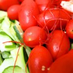 トマトも色鮮やかで良い。我が家で別途買っている、コストコに売っているグレープトマトが使用されていると思われる。一般的なプチトマトと比較して食感がしっかりしていて噛みごたえがあり、プチトマトにありがちな「プチュッ……ジュルジュル……」というぬるっと感がなく、「シュパッ」としていて食べやすい。伝わるのか、これ?