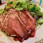ゴリミーブログ グルメ情報 コストコ コストコの「ローストビーフサラダ」はパーティ感を演出する豪華サラダ g.O.R.i 2018年12月25日 コストコの「ローストビーフサラダ」はパーティ感を演出する豪華サラダ コストコでクリスマスパーティ用に「ローストビーフサラダ」を購入してみた。価格は税込み1,480円。内容量は600g。 我が家は「シーザーサラダ」を購入する確率が極めて高いのだが、クリスマスぐらい少し違うものにしよう、という誰にでも思いつきそうな言い訳をして購入。「シーザーサラダ」は高タンパクである点が好きなのだが、「ローストビーフサラダ」もローストビーフモリモリなので良さそうだった、というのもある。 大量のローストビーフが盛られた豪華なサラダ 原材料は下記の通り: レタスミックス(ロメインレタス、サニーレタス) ローストビーフ ジュレ状調味料(醤油、醸造酢、佐藤、ゆず果汁、黒糖ブドウ糖液糖、青ゆずこしょう、食塩、かつお節エキス、酵母エキス、おろしニンニク) ミニトマト 人参 ナチュラルチーズ トレハロース カラメル色素 炭酸水素Na 酸化防止剤(V.C) セルロース 乳酸Ca ゲル化剤(増粘多糖種) 香料 酸味料 香辛料抽出物 (原材料の一部に小麦粉含む) ローストビーフの量はレタスミックスの次。道理でモリモリ入っているわけだ! パーティ用ということで別皿に盛ってみた(妻が)。これ、なんと内容量の半分。かなりのボリュームがあることが分かる。 ホームパーティとなれば人数分の用意も大変なので、コストコのデリカは非常に優秀!「ローストビーフサラダ」は見た目も豪華なので、機会があれば購入するべし!