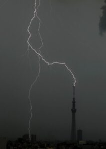 小田急線に落雷した瞬間を捉えた映像