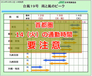 日本気象協会によると、台風19号の影響で連休最終日13日(月)は関東地方全体的に雨が降り、時間が遅くなるに連れて雨と風が強まり、14日(火)の午前中にピークを迎える可能性があると発表している!