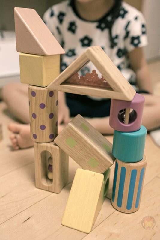 この積み木は、エド・インターの「音いっぱいつみき」。長女が小さい頃に購入したが、今でも愛用してくれている。