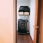 洗面所は驚くほど充実している。入り口を入ると、乾燥機付きドラム洗濯機があり、洗濯用洗剤、ハンガー、ピンチハンガーがすべて完備されている。長期滞在時は、大量の洋服を持ち込まずに洗濯できる。