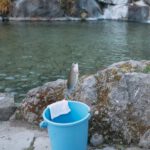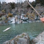 ゴリミーブログ パパミー 子どもと遊ぶ・お出かけ 那須高原清流の里で4歳と2歳が釣り堀初体験。一瞬で釣れてビックリ 4 g.O.R.i 2022年05月01日 那須高原清流の里で4歳と2歳が釣り堀初体験。一瞬で釣れてビックリ 魚2匹を釣り上げるのにかかった時間は(おそらく)3分ぐらい 子どもたちに「釣った魚を食べる」という体験をしてもらうために、那須高原清流の里を訪れた。リゾナーレ那須に行く前に立ち寄れる立地だったこと、釣りデビューに良いとの口コミで決めた。 縦に「清流の里」と大きく書かれた看板が目印だ。 僕にとっても釣り堀は初体験。小さい池のような場所に釣り竿を入れてのんびり待つ、というイメージだったが、清流の里は想像より大きかった。ただしキャッチコピーにある「滝のある釣り堀」の滝がイマイチよく分からなかった。チョロチョロっと岩を流れていたのが滝ということなのだろうか。滝を期待していたわけではないが、あまりにも滝の存在感がなさすぎる。 釣り竿やエサの会計を先に済ませ、いざ釣りにチャレンジ! 一瞬で釣れた。一瞬だった。投げて10秒も経たないうちに引く力を感じ、すぐに引き上げ。釣り堀というのは、これほどスピーディーに釣れるのが一般的なのだろうか。それとも観光客が少なく、魚たちもエサに飢えていて、条件が偶然揃ったのだろうか。 魚ゲット! バケツの中に入れる。針から魚を外す方法が分からず、1匹目はスタッフの人にやってもらった。2回目は自分自身の経験としてチャレンジしてみたが、あっさり取れた。良かった。 釣れた魚を眺める子どもたち。2匹を釣り上げるのにかかった時間は、多く見積もっても3分だろう。子どもたちに釣りの魅力どころか、釣りの雰囲気を伝えられたか心配だが、釣れたばかりの生の魚を触るなどの体験はしてもらえたので良かった。僕も生魚を握ったのはいつぶりだろう。 釣れた2匹の魚をその場で焼いてもらい、4人で美味しく食べた。イワナとニジマスだった気がするが、記憶が曖昧だ。見事な焼き上がりで、外はパリパリで塩気たっぷり、身はふっくら。量は、4歳児と2歳児を含む家族4人で少し多かったぐらいだ。 旅なので、現地のスイーツやジャンキーな食べ物を堪能するのも良いが、釣り堀で釣った魚をその場で焼いて食べるのも、また旅らしくて良い。個人的にはおやつなのに豊富なタンパク質が摂取できて嬉しかった。 串刺しになった焼き魚をかぶり付いたり、指で骨を避けながら食べるのは、非日常で貴重な体験だ。子どもたちは、最初こそ食べるのを躊躇していたが、食べ始めると止まらなくなりガツガツ食べてくれた。 清流の里では、焼き魚以外に地元農家との契約栽培をしているそばが人気だという。今回はリゾナーレ那須への宿泊を控えたおやつ時に訪れたため注文できなかったが、また機会があればお昼に訪問したい。