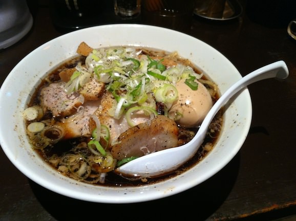 ゴリミーブログ 渋谷グルメ情報 ラーメン(渋谷) 「Wasted Time ~feat.楽々~」(渋谷)はオシャレ系ラーメン屋!期間限定の黒ラーメン食べてきた! g.O.R.i 2011年08月25日 「Wasted Time ~feat.楽々~」(渋谷)はオシャレ系ラーメン屋!期間限定の黒ラーメン食べてきた! 今日はお昼に気になっていたラーメン屋「Wasted Time ~feat.楽々~」で食べてきた。通常はライブハウスとして営業しているため、ランチタイムは14時半までとなっているらしい。 場所は渋谷の東急ハンズの少し手前のところを地下に入ったところ。 券売機ではないのだが、前払い制になっている。 店内はなんかエスニックのようなアジアンのような雰囲気で、BGMにマイケル・ジャクソンのリミックスが流れていた。 普段はライブハイスなので入って左側にこのようなライブスペースがある。 僕が注文したのは期間限定の特選黒ラーメン(900円)。通常より味玉とチャーシューが多めに盛ってある。 胡椒がかなり効いていてちょっと塩っぱかったのでスープは飲み干せなかった。肉も多めに入っていたせいかかなりお腹が満たされた。大盛りにしたら確実に食べれない。 ランチの営業時間が14時半までと短いが、オシャレな空間でラーメンを食べたい人にはオススメ! Wasted Time 食べログ: Wasted Time ~feat.楽々~住所: 東京都渋谷区宇田川町31-3 第3田中ビル B1F